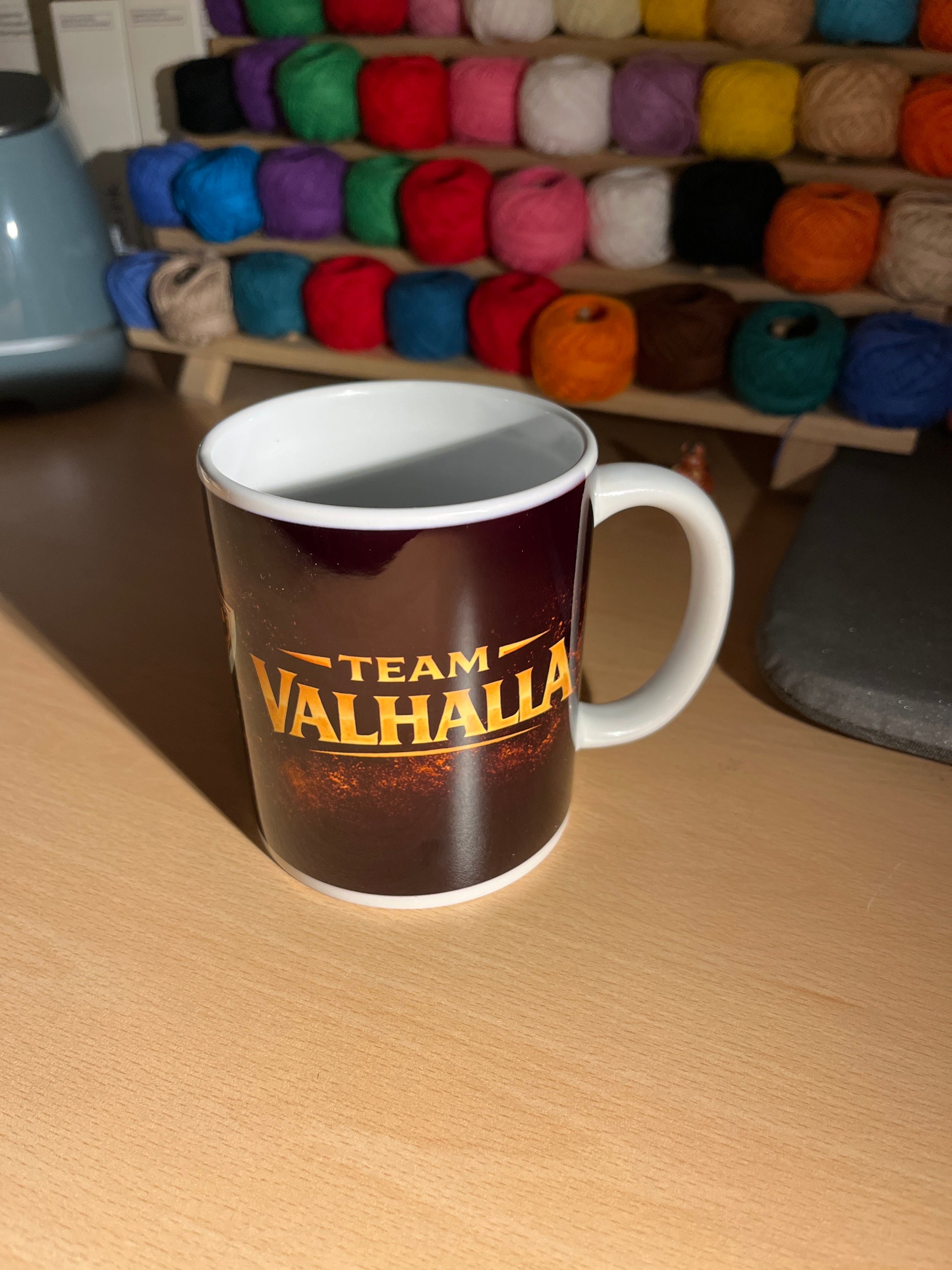 Ce mug Team Valhalla, je l’imprime et je le presse moi-même, dans mon atelier.